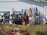 Jag vet redan nu hur det kommer att låta: uppdateringen är försenad och bla bla bla.....Jag vet att sidan inte blivit behandlat med sedvanlig effektivitet sista tiden men var lugn, allt har sin förklaring. Innan jag kryper till korset vill jag i allafall börja med att konstatera att våren i Arjeplog följer sedvanliga mönster i månaden maj. I dag - 14/5 - snöar det! Och det snöar inte lite heller. Tänk, bara för några dagar sedan var det varmt och osedvanligt härligt och man kunde utan blånader ta på sig kortärmebyxen'. Jag har de förresten på mig fortfarande men idag är det faktiskt i svalaste laget.....Men våren har definitivt kommit förbi och faktiskt under vissa dagar givit en försmak av vad sommaren kan tänkas erbjuda. Förra helgen t. ex. så packade jag in all vinterutrustning tillhörande klanen och i vanlig ordning snackar vi om ansenliga mängder som ska stuvas in och förvaras. Kolla själva hur det kan se ut när en aktiv familj förbereder säsongsbyte: