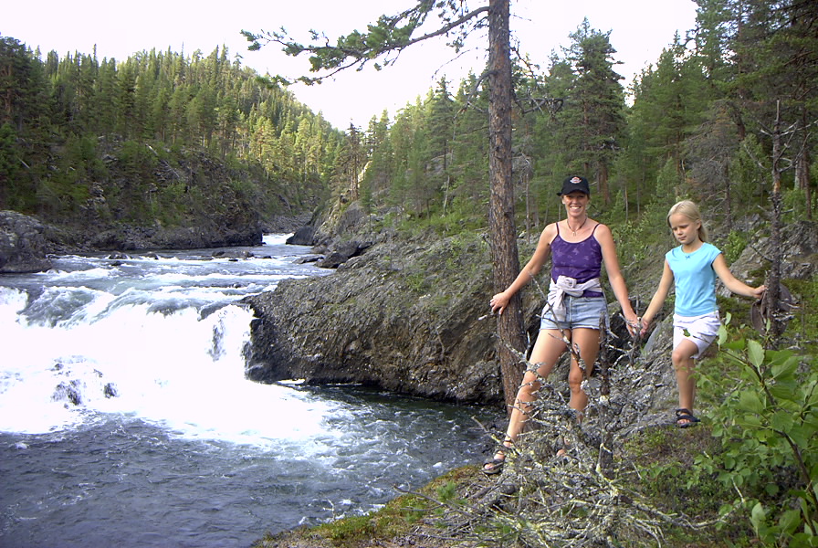 Sen så hann vi med en tur upp efter laisdalen och en sväng till Märkberget och Märkforsen. det är ett sagoligt vackert ställe och Sol, Mysan, Hobbe, Tyra, Helene och undertecknad hade en alldeles för kort dag i vägens aände. Eller början. Men vackert är det där och vi hann även med en tur till Mariannes handelsbod i Adolfström för glassätning och en tur till smälthyttan.
