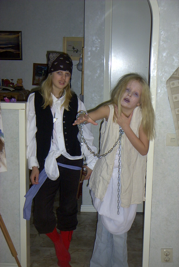 I helgen har det varit spöken, pirater och troll på besök och man måste bara beundra kidsen för deras utstyrslar. Och Sols förmåga att realisera deras ideér. Kolla bara in Moa och Amanda innan de drog ut på godisjakt. Men ett kommersiellt jippo är det - halloween- och jag tycker det är lite fånigt faktiskt. Men allhelgonahelgen är något annat och sedvanligt besök på kyrkogården känns inte bara bra, det är sanslöst vackert också. Kvällar som dessa med hundratals lyktor skapar en skön och fridsam stämning.